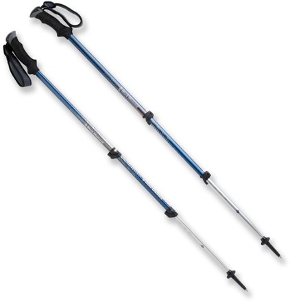 The black diamond distance plus flz trekking poles is unique in that it is composed of an upper section that is actually three nested aluminum tubes and then a lower portion that consists of two aluminum pole sections connected to the inner tube of the upper section by a shielded kevlar cord.